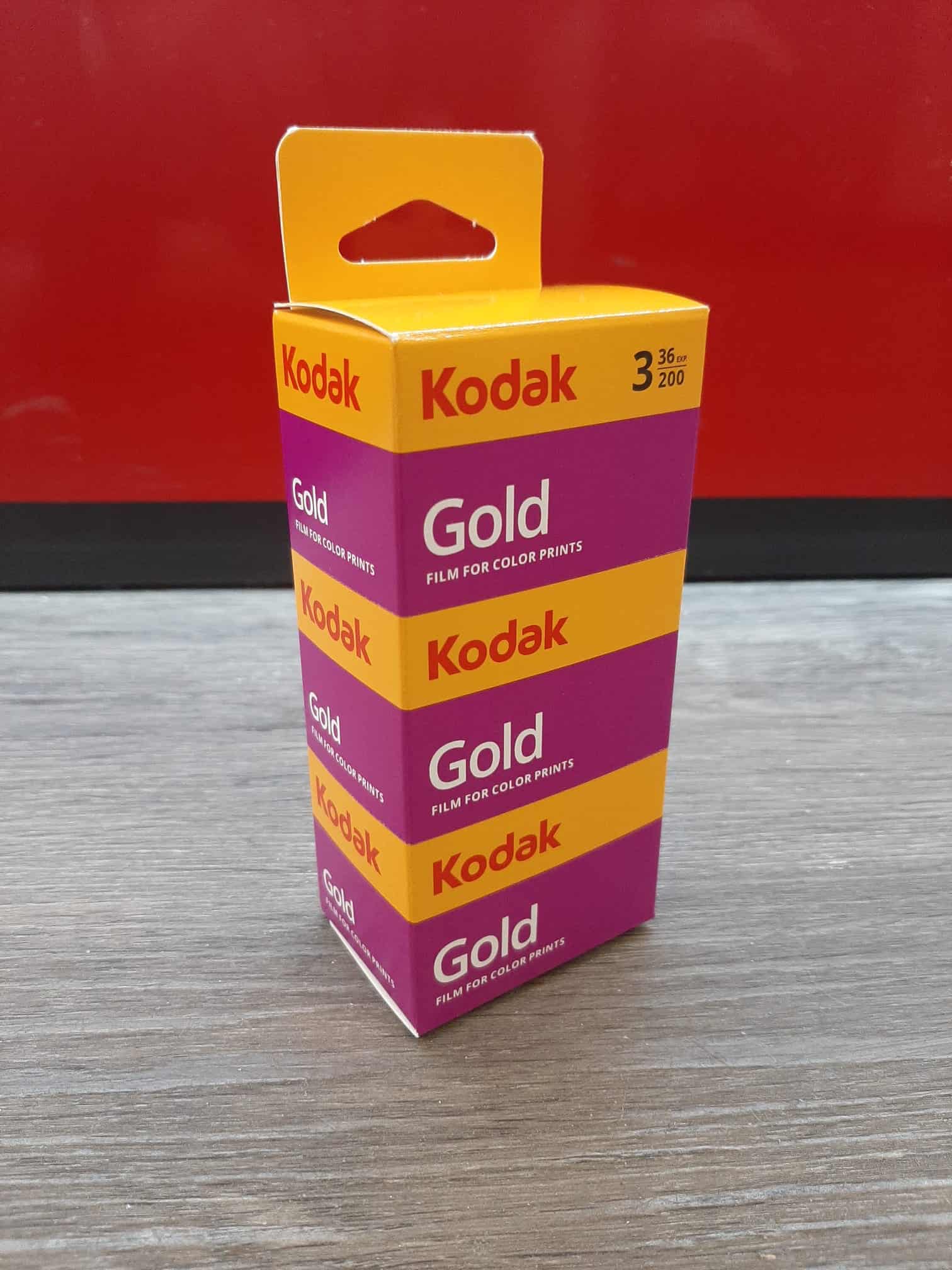 Nu uit voorraad leverbaar: Kodak Gold film voor het maken van kleurenfoto’s met een analoge camera. Een verpakking bestaat uit drie rolletjes kleinbeeldfilm van 35mm, elk goed voor 36 opnames. De negatieven hebben ISO 200, wat geschikt is voor de meeste situaties en dankzij de fijne korrel levendige kleuren en een hoge scherpte oplevert.