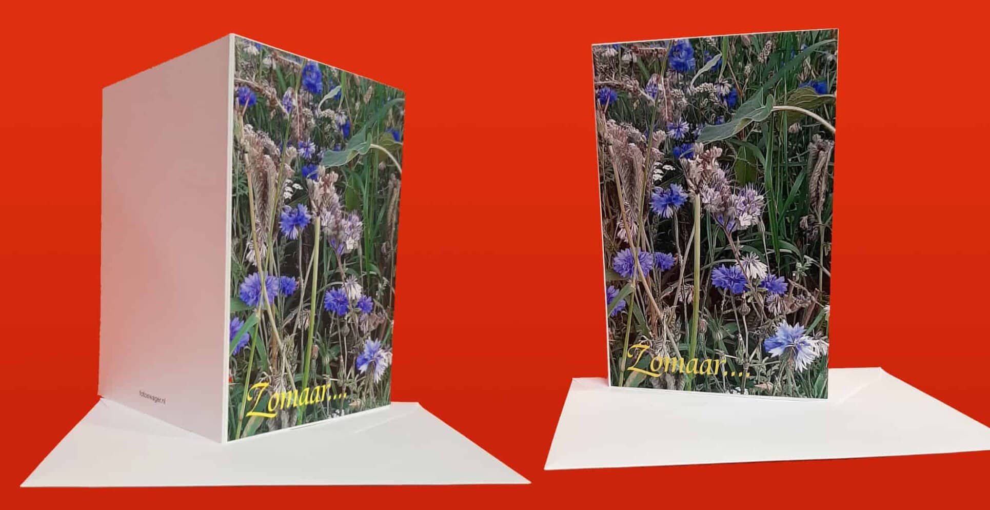 Maak zelf eenvoudig een mooie persoonlijke wenskaart, met uw eigen foto. Op de voorkant van de lege wenskaart past precies een reguliere foto van 10×15 cm, zodat u elke zelfgemaakte foto kunt gebruiken. Bijvoorbeeld een foto die u thuis al heeft, of een foto die wij voor u afdrukken.